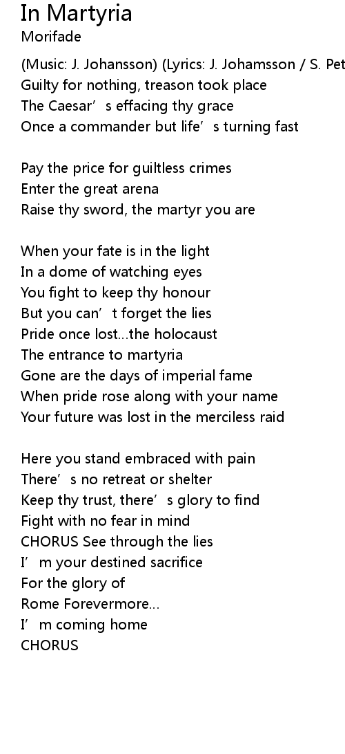 | (Music: J. Johansson) (Lyrics: J. Johamsson / S. Petersson) | |
