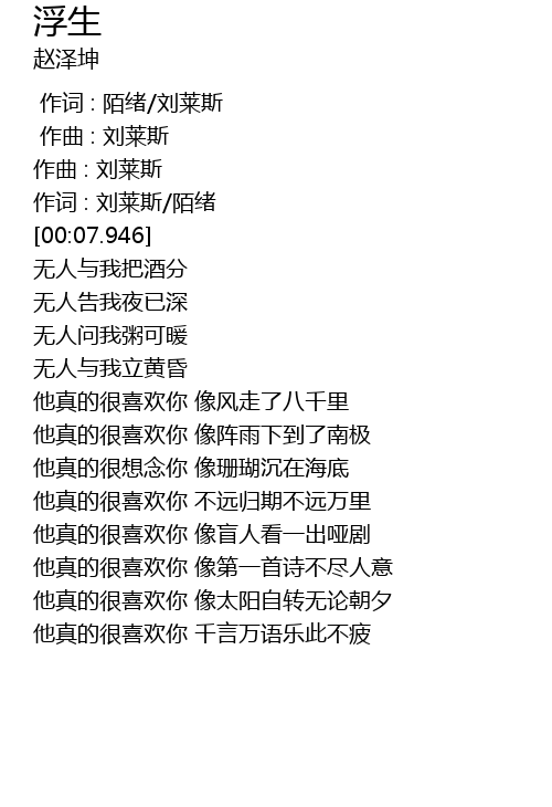 | [01:40.954] | 他真的很喜欢你 像太阳自转无论朝夕 |