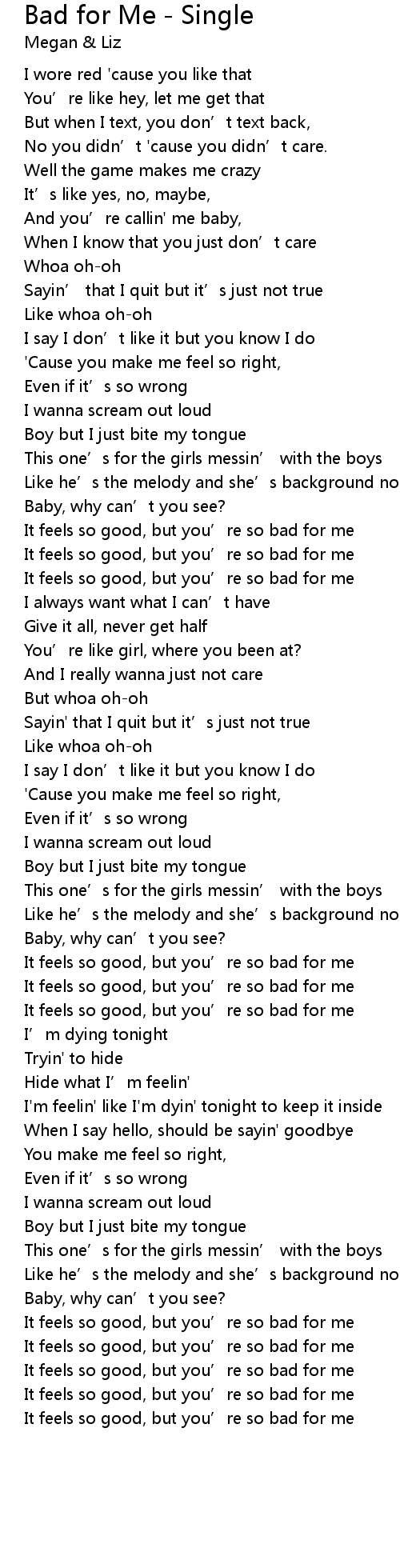 | It feels so good, but you' re so bad for me |