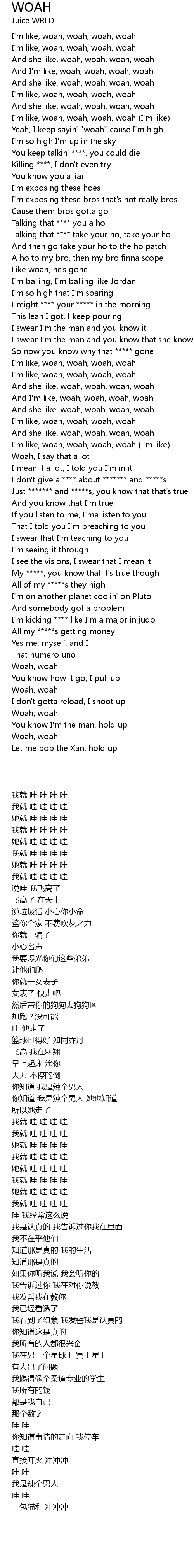 Yeah, I keep sayin' "woah" cause I'm high |