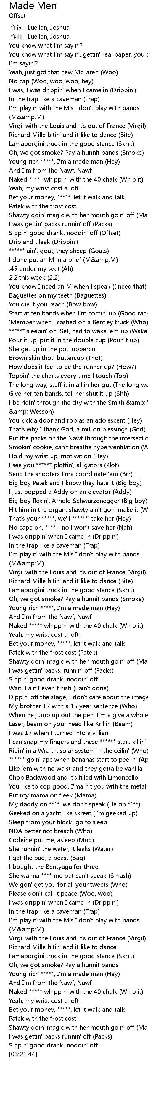 | [00:41.14] | Sippin' good drank, noddin' off (Offset) |