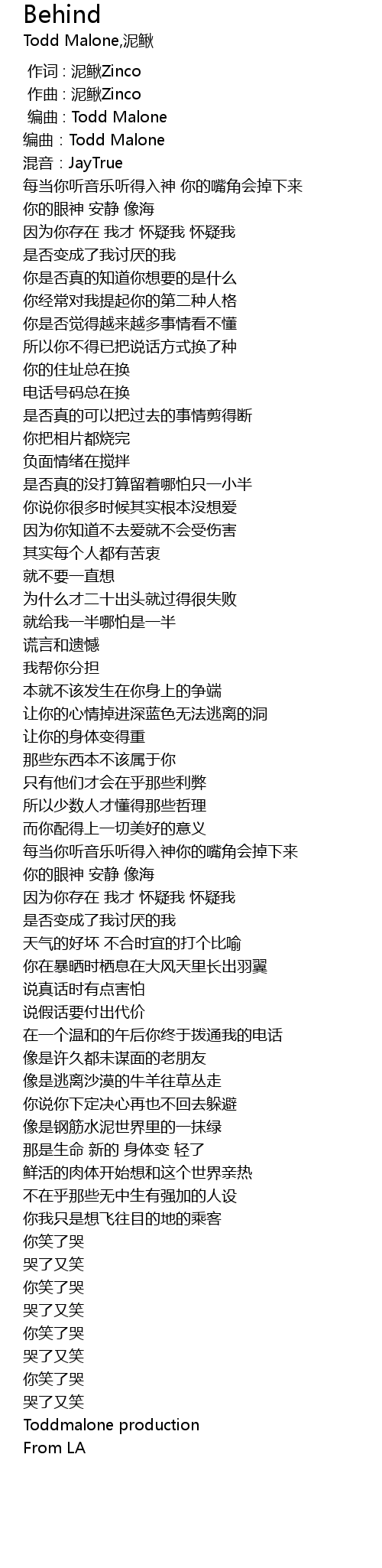 | [00:02.000] | biān qǔ : Todd Malone |