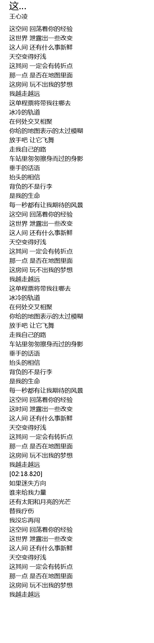 | [03:04.320] | 这空间 回荡着你的经验 |
