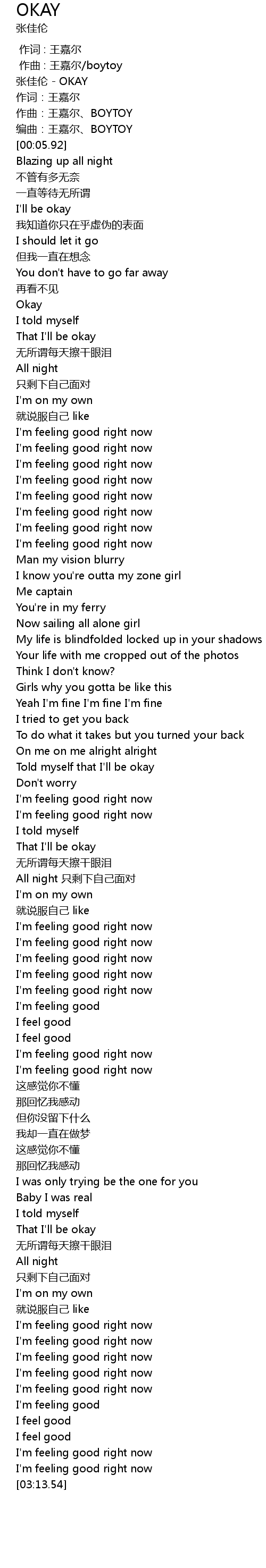 | [01:38.36] | Yeah I' m fine I' m fine I' m fine |