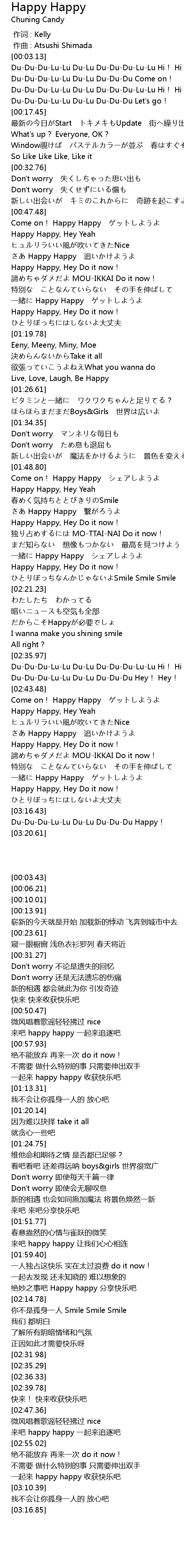 | [01:13.31] | Happy Happy, Hey Do it now! |