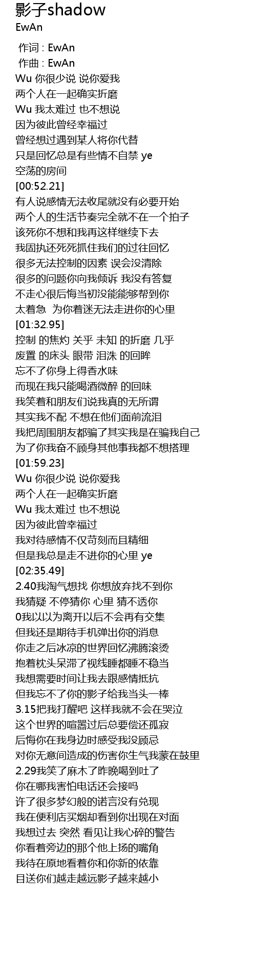 | [00:00.000] | 作词 : EwAn |