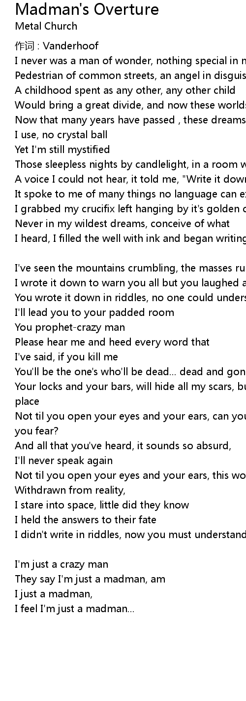 | A voice I could not hear, it told me, " Write it down you fool" | |