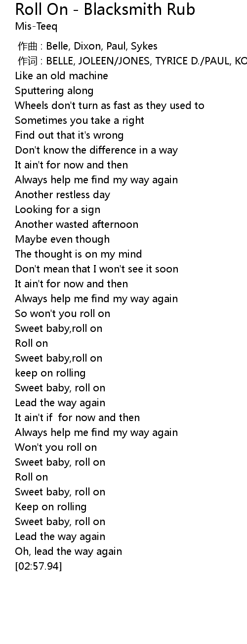 | [00:00.00] | 作曲 : Belle, Dixon, Paul, Sykes |