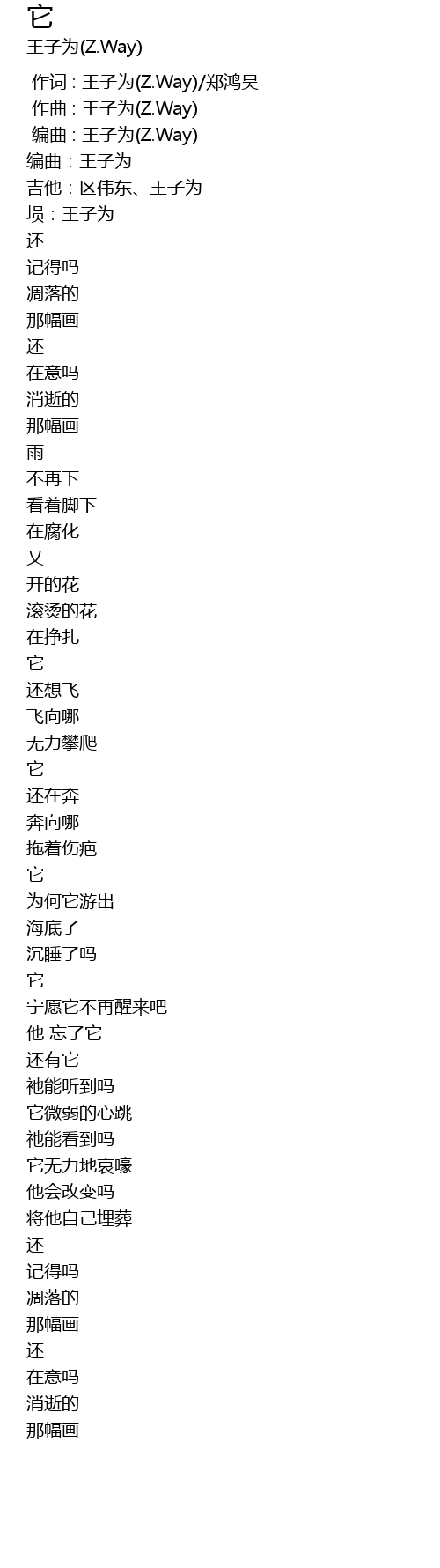 | [00:01.000] | 作曲 : 王子为(Z.Way) |