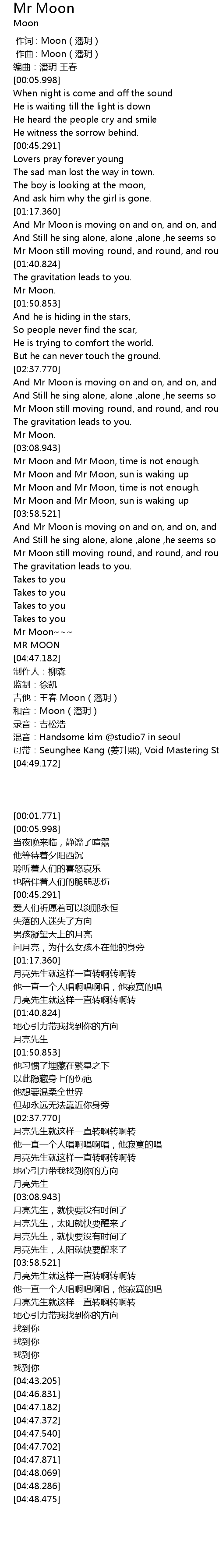 | [04:43.205] | Mr Moon~~~ |