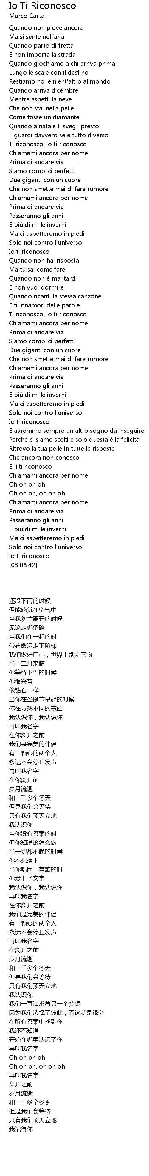 | [00:37.72] | Ti riconosco, io ti riconosco |