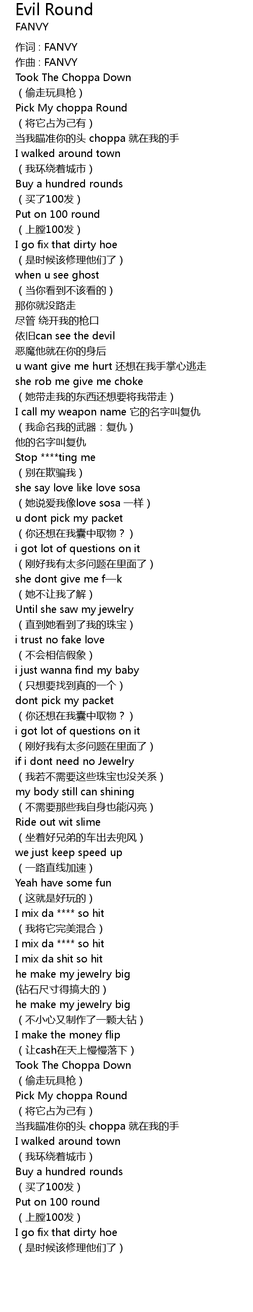 | dāng wǒ miáo zhǔn nǐ de tóu choppa jiù zài wǒ de shǒu | |