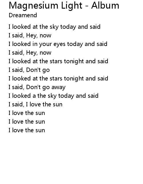 | Song | Magnesium Light - Album |