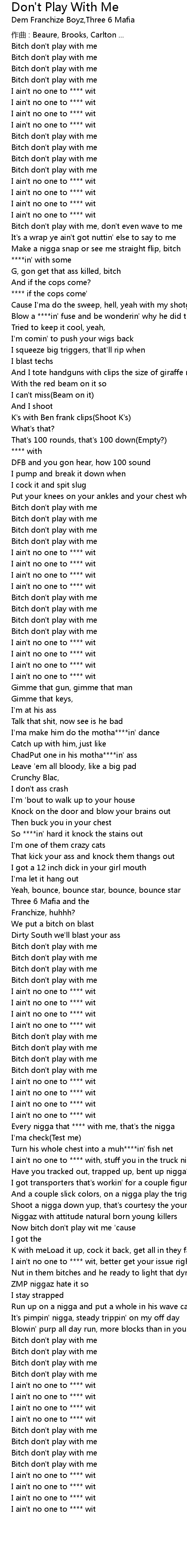 | Now bitch don't play wit me 'cause | |