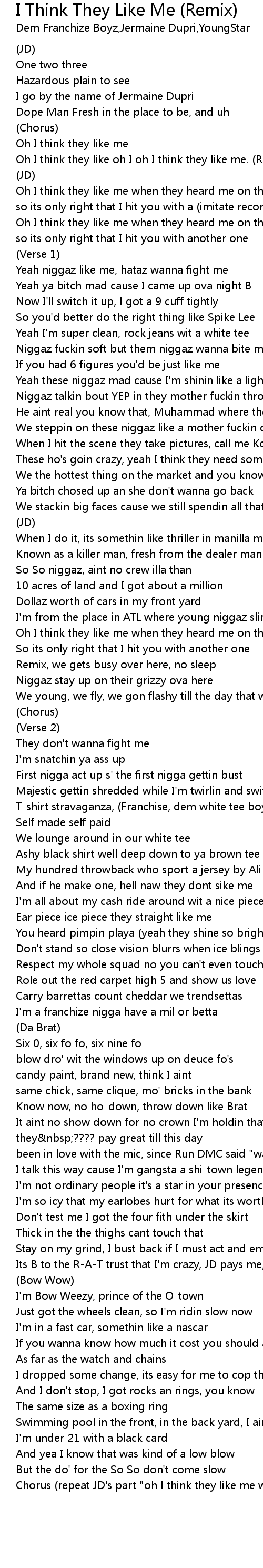 Oh I think they like oh I oh I think they like me. (Repeat) |