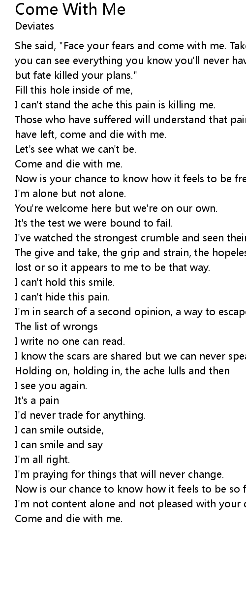 Those who have suffered will understand that pain is welcome when it's all you have left, come and die with me. |