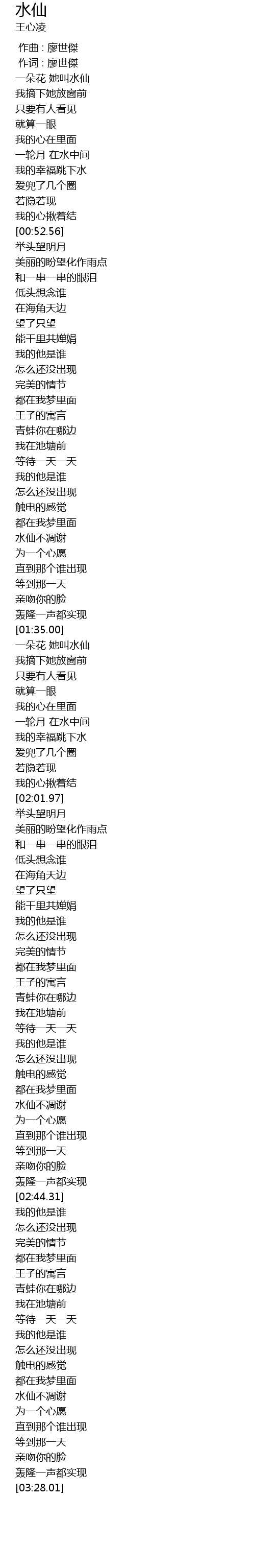 | [02:35.09] | shuǐ xiān bù diāo xiè |