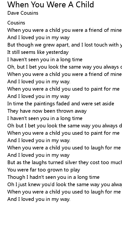 When you were a child you were a friend of mine |