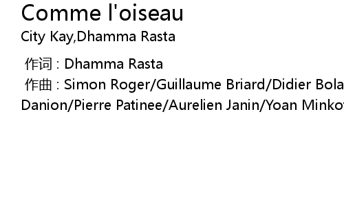 | [00:00.000] | zuo qu : Simon Roger Guillaume Briard Didier Bolay Ma l Danion Pierre Patinee Aurelien Janin Yoan Minkoff |