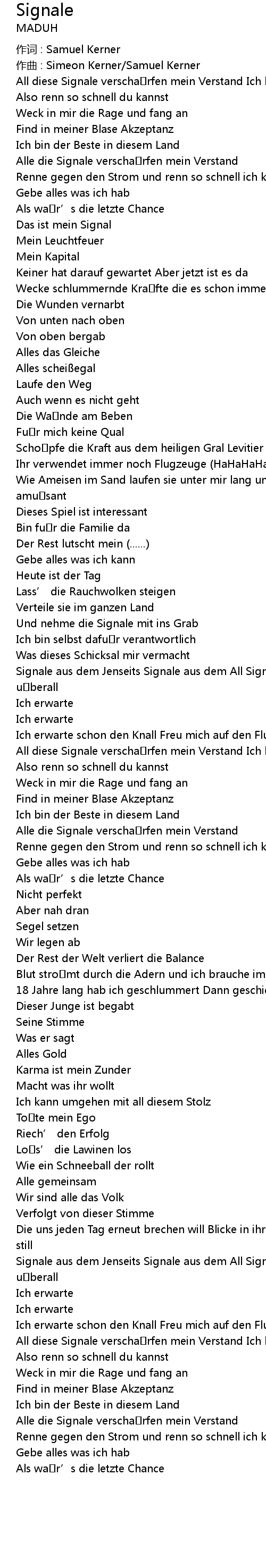 | All diese Signale verscha rfen mein Verstand Ich kenne keine Gnade | |