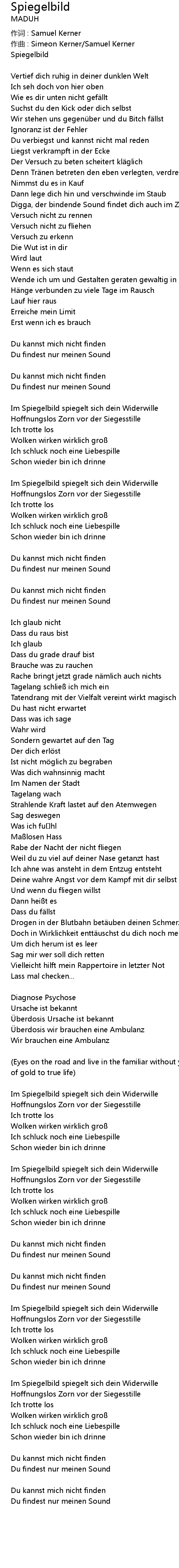 | Im Spiegelbild spiegelt sich dein Widerwille | |