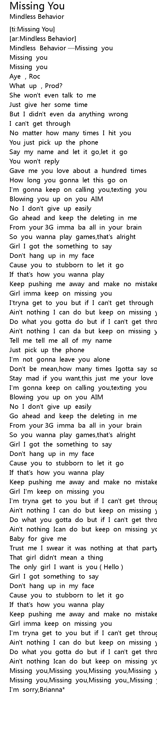 | [03:13.44] | Missing you,Missing you,Missing you,Missing you |