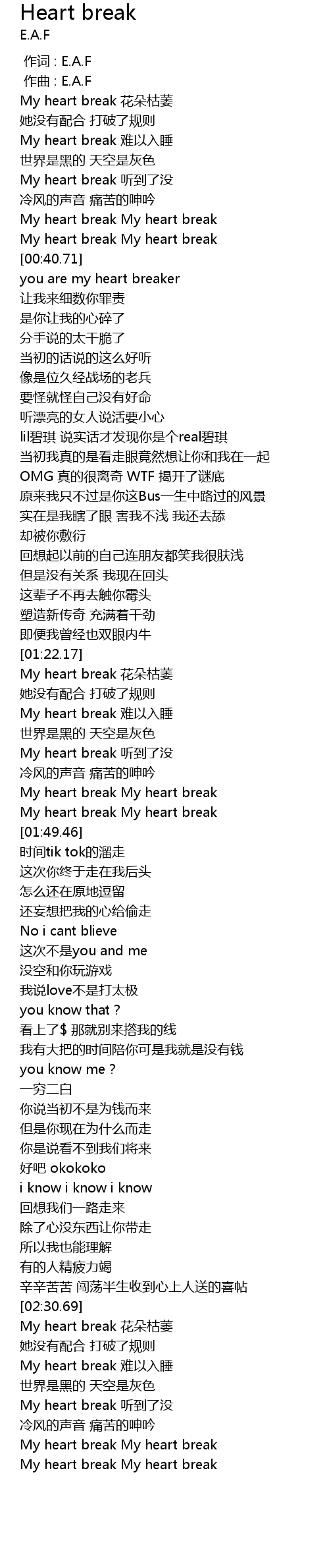 | [01:35.89] | My heart break 听到了没 |