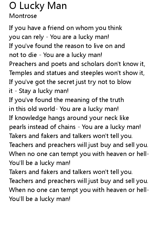 O Lucky Man Lyrics