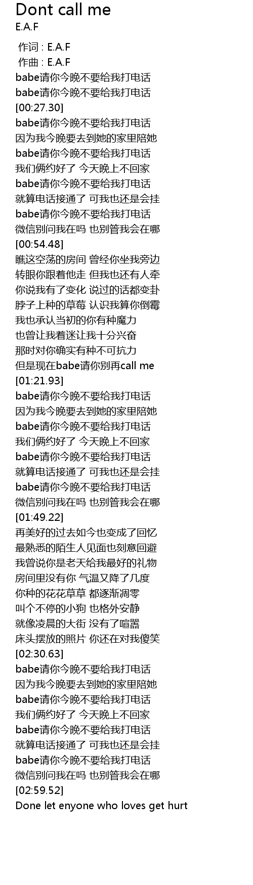 | [01:35.90] | babe请你今晚不要给我打电话 |