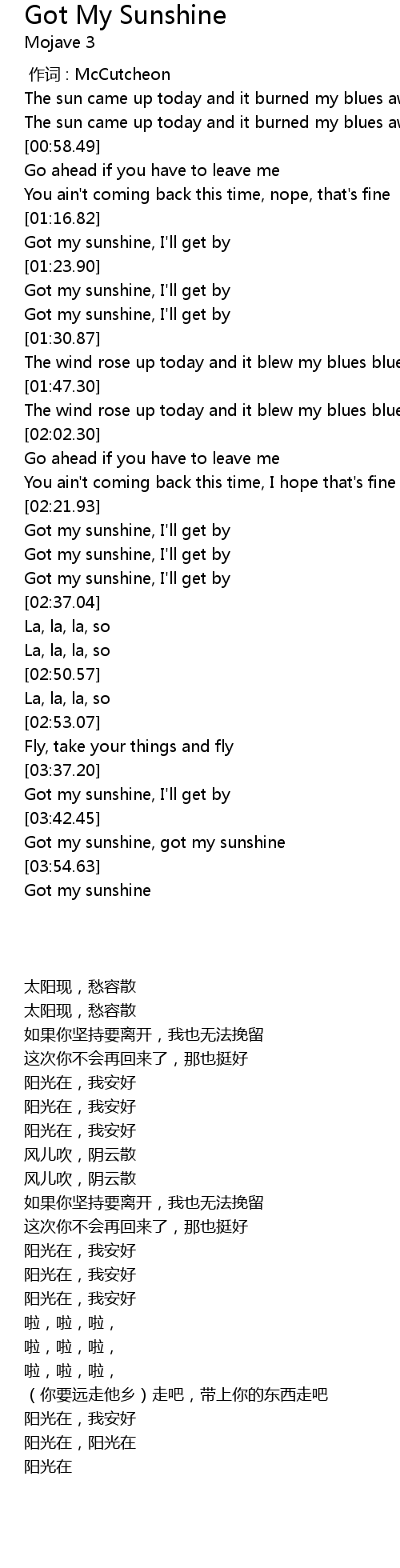 | [03:46.45] | Got my sunshine, got my sunshine |