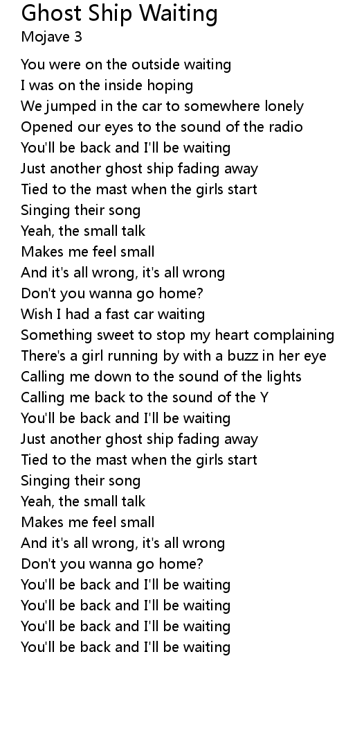 You'll be back and I'll be waiting |