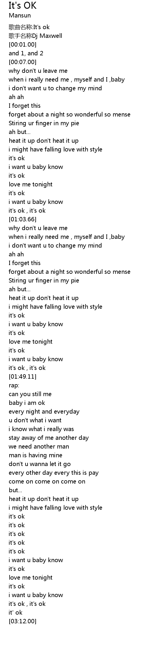 | [00:00.32] | gē qǔ míng chēng: It' s ok |