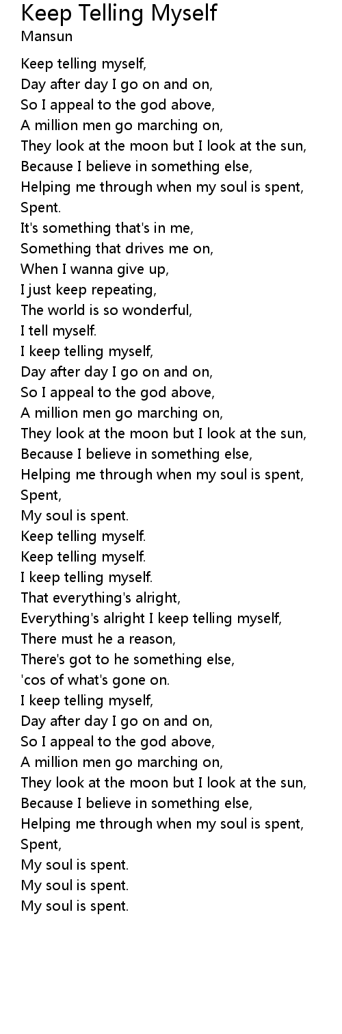 Keep telling myself, |