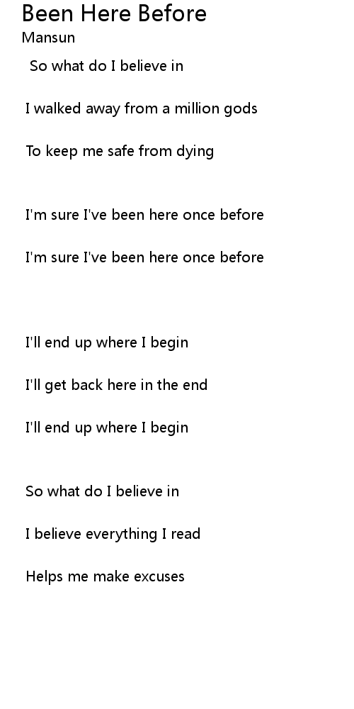 | Song | Been Here Before |