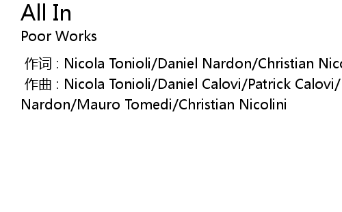 | [00:00.000] | 作曲 : Nicola Tonioli/Daniel Calovi/Patrick Calovi/Daniel Nardon/Mauro Tomedi/Christian Nicolini |