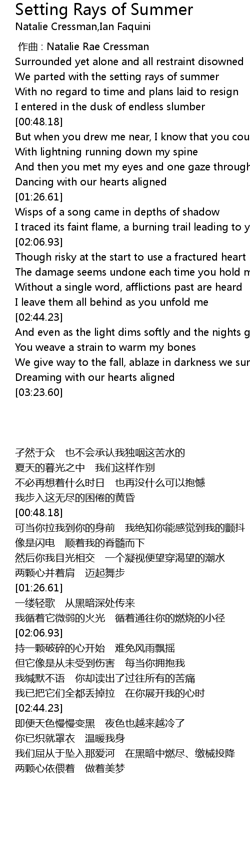 | [02:45.99] | And even as the light dims softly and the nights grow colder |