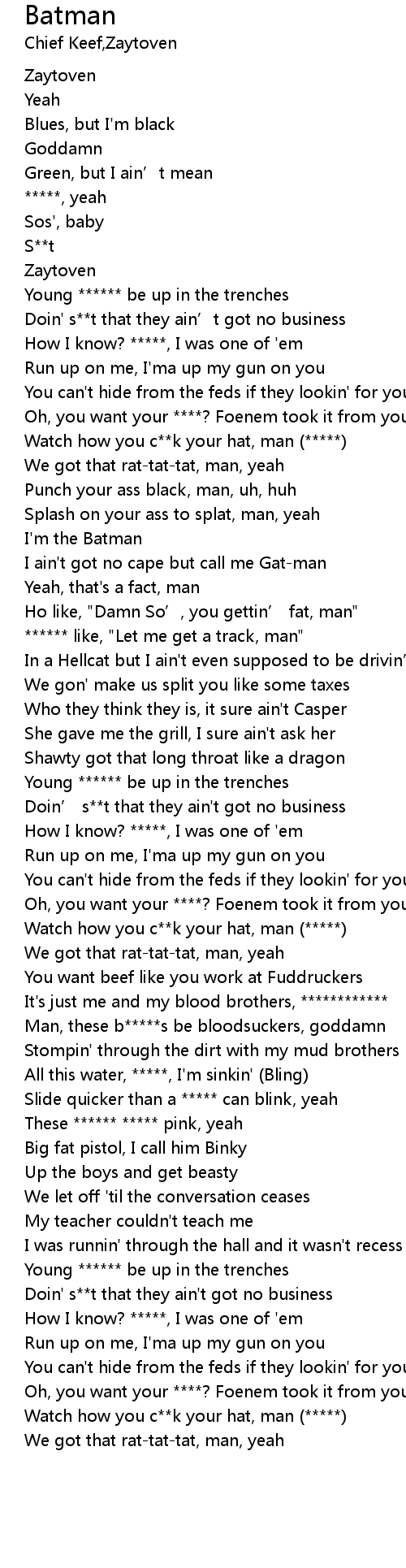 | [01:48.32] | Watch how you c**k your hat, man (*****) |