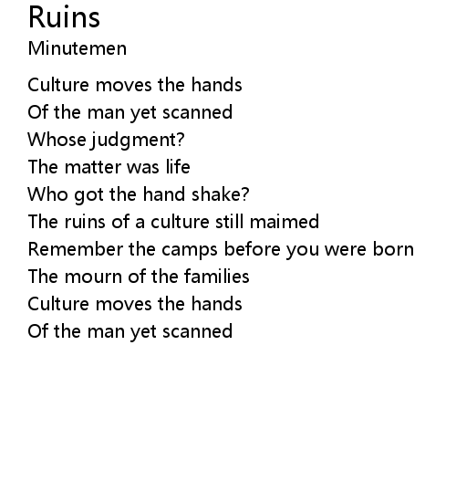 | The ruins of a culture still maimed | |
