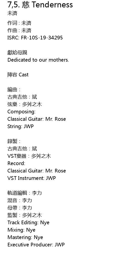 | Song | 7,5. 慈 Tenderness |