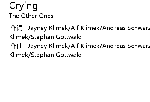 | [00:00.000] | zuò cí : Jayney Klimek Alf Klimek Andreas SchwarzRuszczynski Johnny Klimek Stephan Gottwald |