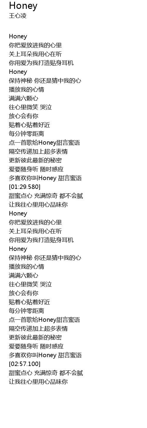 | [02:53.579] | 多喜欢你叫Honey 甜言蜜语 |