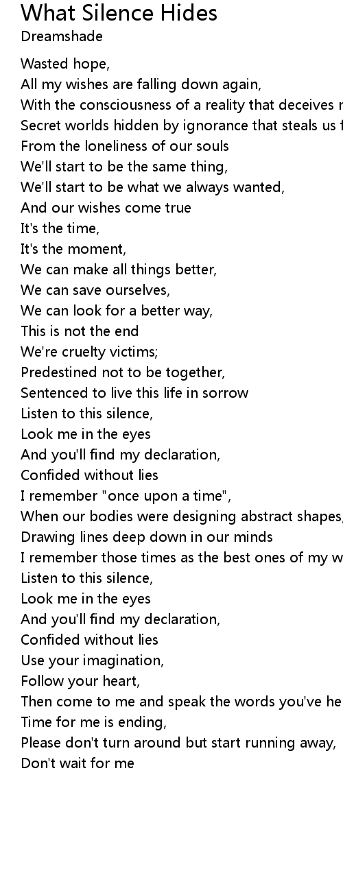 Listen to this silence, |