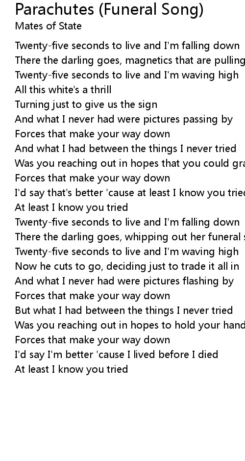 Twenty-five seconds to live and I'm falling down |