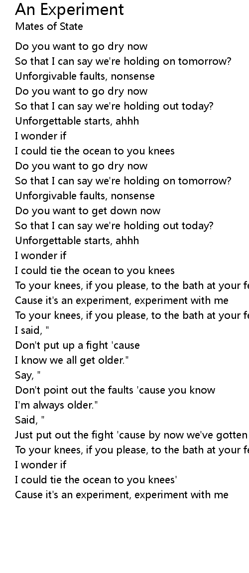 Cause it's an experiment, experiment with me |