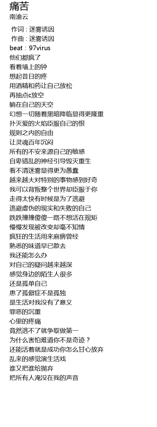 | [00:00.000] | 作词 : 迷雾诱因 |