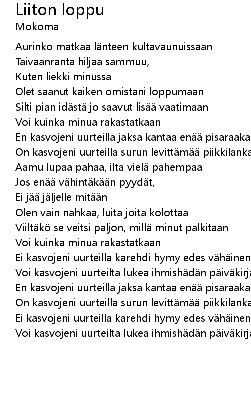 | Olet saanut kaiken omistani loppumaan | |