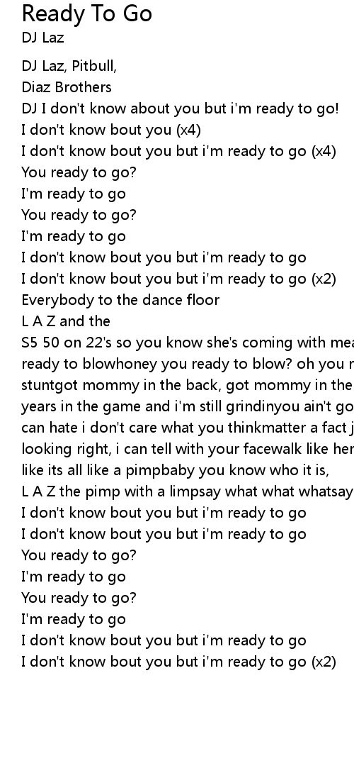 I don't know bout you but i'm ready to go (x2) |