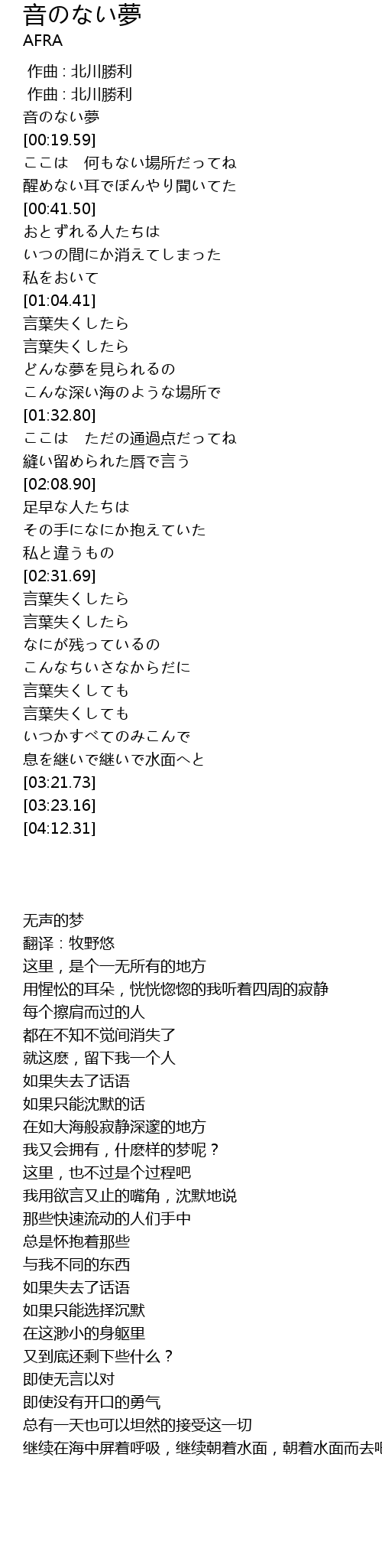 | [00:32.51] | 醒めない耳でぼんやり聞いてた |