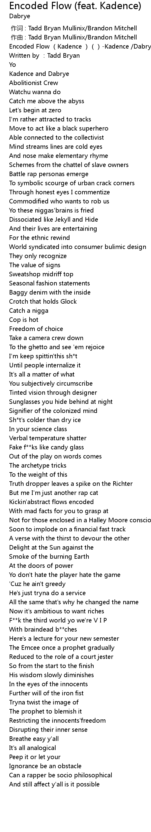 | [00:00.00] | Encoded Flow Kadence Kadence Dabrye |