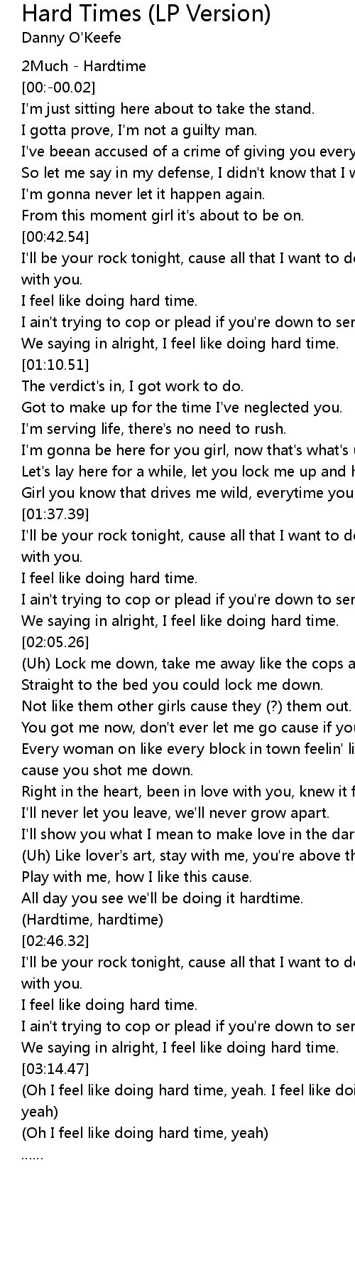 | [03:23.40] | Oh I feel like doing hard time, yeah |